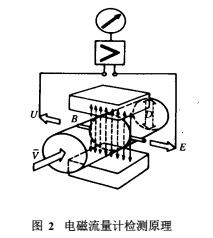 具有導電性的被測介質(zhì)液態(tài)以一定的速度流動時,則在與流動方向垂直的方向上產(chǎn)生與流量成比例的感應電勢 E,其值為