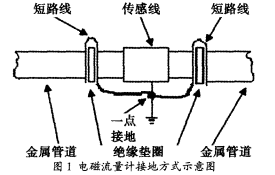 再次,需要做好在污水流量計安裝過程當中接地以及接液方面的工作。在應用污水流量計對管道內(nèi)部流體流動速度進行測量的過程當中,傳感器輸出信號與電極間所對應的電壓差水平處于均等狀態(tài)。因此,為了確保流量計的平穩(wěn)、可靠運行,就需要設(shè)置一個零電位的基準點作為參照。故而,在此過程當中,接液處理的核心在于:將管道內(nèi)部導電液體接地設(shè)置為零電位的基準點參照;而同時接地處理的核心則在于:避免污水流量計在測量流體流速過程當中受干擾影響,并對污水流量計進行合理的安全保護。與此同時,接地處理還能夠使靜電感應以及電磁感應所可能誘發(fā)的噪聲電壓得到有效的抑制,剔除對測量數(shù)據(jù)的干擾。通過對接地電阻水平的控制,使回路雜散電流壓降水平明顯降低,依賴于降低共模干擾電壓的方式,達到鞏固污水流量計測量準確性的目的。具體的接地方式如圖所示