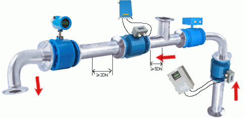 ⑴盡量避開鐵磁性物體及具有強(qiáng)電磁場(chǎng)的設(shè)備(如大電機(jī)、大變壓器的等),以免磁場(chǎng)影響傳感器的工作磁場(chǎng)和流量信號(hào)。