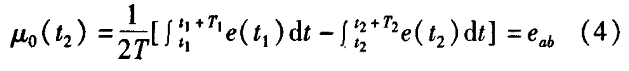 冷熱水流量計一般都采用工頻交流電源供電,其電源電壓的幅值和頻率的變化都會給冷熱水流量計帶來電源性干擾噪聲。對電源電壓的幅值變化,因采用多級集成穩(wěn)壓,一般而言電源電壓的幅值變化對電磁流量的測量精度影響不大。當電源電壓的頻率波動時,雖然其波動范圍有限,但對冷熱水流量計測量精度影響較大。為了解決工頻干擾問題,實現(xiàn)對流體流速感應電勢e柚信號的準確測量,需利用以下基本關系:①勵磁周期為工頻周期的整數(shù)倍,即勵磁頻率為50/nHz(n為偶數(shù));②正負勵磁下的同相位采樣。圖2是對應低頻矩形波勵磁形式下的典型電勢信號形式,按上述關系在一個勵磁周期下,若假設t。和t:點為工頻干擾的等效干擾點,且采樣寬度T=T1=T2,則e –ab的基本算式為:,