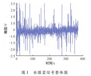 針對暖通中央空調(diào)管道水流量計測量水煤漿時出現(xiàn)較大波動,甚至回零這一問題,特去某煤化工企業(yè)甲醇分公司進行現(xiàn)場數(shù)據(jù)采集。該公司所使用的對置式四噴嘴氣化有4個噴嘴,噴嘴管道口徑為125mm,管中水煤漿流量基本穩(wěn)定在19m³/h(流速約為0.48m/s)。每條噴嘴煤漿線上安裝了3臺暖通中央空調(diào)管道水流量計,每臺暖通中央空調(diào)管道水流量計由傳感器和變送器兩部分組成。選擇其中1條水煤漿管線上的1臺暖通中央空調(diào)管道水流量計進行數(shù)據(jù)采集,因為該臺暖通中央空調(diào)管道水流量計測量結(jié)果波動大,甚至出現(xiàn)回零的現(xiàn)象。將課題組研制的基于DSP的電磁流量變送器的信號線和勵磁線接到該電磁流量傳感器的電極和勵磁線圈上,組合成完整的暖通中央空調(diào)管道水流量計,進行水煤漿數(shù)據(jù)采集。使用的電磁流量變送器是以TI公司DSP芯片TMS320F28335為核心,采用高頻勵磁方案,其硬件主要包括勵磁控制系統(tǒng)和信號采集處理系統(tǒng),具體的模塊有勵磁驅(qū)動模塊、信號調(diào)理采集模塊、信號處理控制模塊、人機接口模塊、通信模塊及電源管理模塊。信號調(diào)理采集模塊中的調(diào)理電路對一次儀表輸出的信號進行放大和濾波,截止頻率是2kHz,放大倍數(shù)約為230倍。通過NI公司USB-6216型號的數(shù)據(jù)采集卡進行數(shù)據(jù)采集,把調(diào)理電路的輸出端連接到數(shù)據(jù)采集卡的一個差分輸入端,并設(shè)置數(shù)據(jù)采集卡工作在差分的測量模式,設(shè)置采集卡的采樣頻率為10kHz。采集多組水煤漿信號數(shù)據(jù),每組數(shù)據(jù)的時間長度為5min。