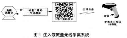二維碼生成模塊定時(shí)向測(cè)液體流量計(jì)發(fā)送采集指令,后者收到指令后發(fā)送流量數(shù)據(jù)。