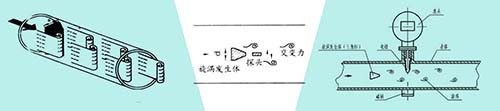(3)有縮頸、擴(kuò)頸和彎管時(shí),應(yīng)配置合理的上、下游直管段,如果管道中有一個(gè)彎管接頭,那么流量計(jì)和旋渦發(fā)生體與彎管接頭應(yīng)在同一平面。