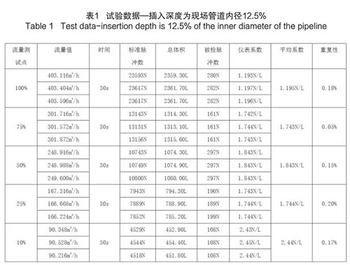 插入式煙氣流量計(jì)插入深度為現(xiàn)場管道內(nèi)徑的 12.5%時(shí),試驗(yàn)數(shù)據(jù)如下(以 DN200 為例):