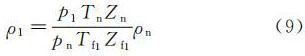 對于組分穩(wěn)定的氣體,可用式(9)計算ρ1: