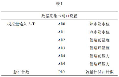 數(shù)據(jù)采集系統(tǒng)由工控機、化工污水流量計以及數(shù)據(jù)采集卡組成。 4000 次冷熱沖擊試驗要求在在*大流量 qs 條件下運行,對流量數(shù)據(jù)的采集用到化工污水流量計及數(shù)據(jù)采集卡。化工污水流量計采集管路流量,數(shù)據(jù)采集卡將化工污水流量計采集到的數(shù)據(jù)反饋給工控機系統(tǒng)。過程中,試驗管路水溫以及水箱水位的采集控制也是通過數(shù)據(jù)采集卡反饋給系統(tǒng)控制。試驗過程用到的數(shù)據(jù)采集卡采用研華生產(chǎn)的PCI - 1711。PCI - 1711 是一款多功能 PCI 總線數(shù)據(jù)采集卡,具有 16 路單端模擬量輸入功能、2 路 12位模擬量輸出功能、16 路數(shù)字輸入和 16 路數(shù)字輸出功能、計數(shù)器功能等。為保證冷熱沖擊試驗結(jié)果的準(zhǔn)確性,嚴(yán)要求嚴(yán)格控制管路流量以及管路壓力。因此,管路設(shè)置前后管路溫度、冷熱水箱水位以及管路壓力的采集,管路流量根據(jù)化工污水流量計脈沖計數(shù)進(jìn)行采集,其數(shù)據(jù)采集卡端口設(shè)置如表 1 所示。