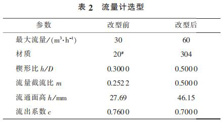 2) 為了解決泵出口流量計頻繁泄漏以及流量較低不能滿足工藝需求的問題,更換新型流量計,其相關(guān)參數(shù)見表 2。 更換后的流量計運行 4 000 h后未出現(xiàn)泄漏現(xiàn)象。