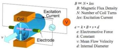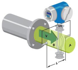 基本上,當(dāng)導(dǎo)電液體流過磁場(chǎng)時(shí),會(huì)感應(yīng)出電壓。為了測(cè)量該產(chǎn)生的電壓(與流動(dòng)的液體的速度成正比),使用了兩個(gè)彼此相對(duì)安裝的不銹鋼電極。
