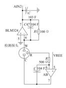 傳感器輸出電流通過檢測(cè)電阻時(shí),測(cè)量電阻兩側(cè)的電壓值,電壓值與電阻值的比值就是電流值,好終通過計(jì)算就能獲取煙氣中二氧化硫的體積濃度。由于 SO 2 -2000 傳感器輸出電流為微安級(jí),導(dǎo)致檢測(cè)電阻兩側(cè)的電壓值過小,因此利用兩極運(yùn)算