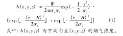 在循環(huán)流化床dn150渦街流量計(jì)煙氣脫硫排放效果監(jiān)測(cè)系統(tǒng)中,采用適于連續(xù)點(diǎn)源擴(kuò)散研究的高斯煙羽模型 。此模型忽略重力影響,將風(fēng)力情況設(shè)定為水平風(fēng),不存在垂直地面風(fēng)。在保證較長時(shí)間內(nèi)風(fēng)向、風(fēng)速、大氣穩(wěn)定度等環(huán)境因素均處于穩(wěn)定狀態(tài)的基礎(chǔ)上,構(gòu)建高斯煙羽模型,可仿真循環(huán)流化床dn150渦街流量計(jì)排放煙氣中二氧化硫沿下風(fēng)向擴(kuò)散的濃度分布,該模型滿足: