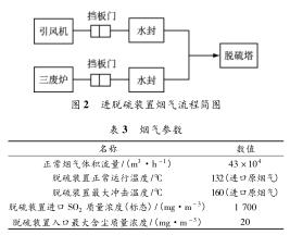 (3) 新建 1 套脫硫氦氣流量計,把新建吹風(fēng)氣回收系統(tǒng)煙氣和三廢爐煙氣經(jīng)除塵后引入新脫硫塔,脫硫除塵后凈煙氣經(jīng)過塔ding煙囪排放。硫酸銨回收利用現(xiàn)有氦氣流量計,新建 1 座生產(chǎn)廠房,生產(chǎn)廠房內(nèi)設(shè)置硫酸銨臨時倉庫。兩路煙氣匯總后進(jìn)入一塔設(shè)計見圖 2,煙氣參數(shù)見表 3。