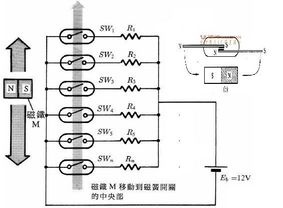 磁變送器(干簧管變送器):與磁開關(guān)的原理相似,它是捆綁在浮筒外面。當(dāng)浮筒里面的浮子隨著液位變化時(shí),上下移動,浮子中的磁鋼所在的位置將改變干簧管中磁開關(guān)的狀態(tài)(閉合),只有在磁鋼作用范圍內(nèi)的干簧管閉合,其它都處于開路狀態(tài),從而改變回路的電阻值,或者說是改變了輸出回路的阻值。浮子的位置相當(dāng)與電位器的滑動點(diǎn),隨著浮子的位置變化,引起上下電阻的抽頭(上下電阻值)變化,液位越低,電阻值越大,越高電阻越?。ǔ鼍€在頂部)。由于回路是恒(定電)流,再通過電流/電壓轉(zhuǎn)換,進(jìn)而可以轉(zhuǎn)化為4~20mA/HART 等信號。液位變化,液位旁邊的磁開關(guān)閉合,電阻值變化,輸出電壓隨之變化。