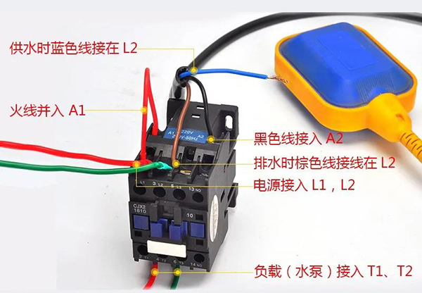 使用藍(lán)色和棕色的電線:浮球在上液位時,接點是不通的狀態(tài)。浮球在下液位時,接點是接通的狀態(tài)。
