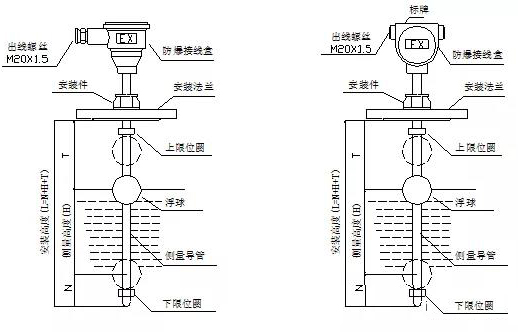 2、安裝前需確認(rèn)被測(cè)液體內(nèi)及液位計(jì)周圍不應(yīng)有鐵磁性雜質(zhì),且介質(zhì)比重應(yīng)大于浮球的比重,否則會(huì)影響液位計(jì)正常工作。