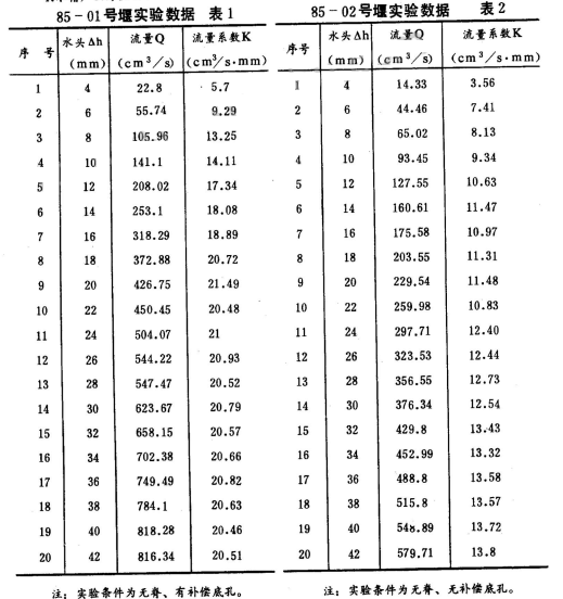 2.無(wú)補(bǔ)償?shù)卓椎碾p曲線無(wú)脊薄壁堰,見(jiàn)圖8,其流量與作用水頭之間變化關(guān)系基本上是線性的,流量系數(shù)K值隨作用水頭升高略有增大。