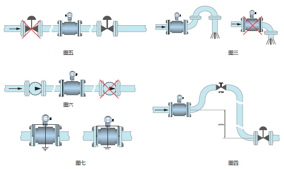 液體電磁流量計對安裝點的上、下游工藝管有一定的要求,否則影響測量精度。